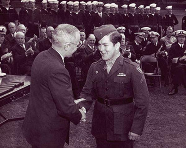 盧卡斯大喊“手榴彈”,將其中一枚手榴彈撲在身下,并抓起另一枚往身下送。這兩枚手榴彈有一枚沒響,爆炸的一枚手榴彈造成盧卡斯的胸、手臂和腿嚴重受傷,而三名戰友無一受傷,并將11名日軍士兵打死。