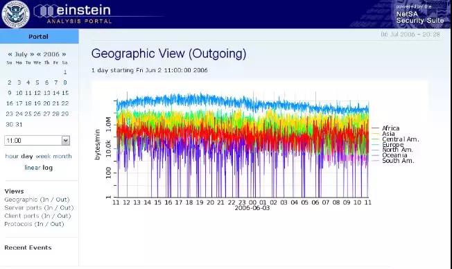 “愛因斯坦”(Einstein)計劃是由美國國土安全部(DHS)負責,國防部(DOD)和國家安全局(NSA)配合參與來推進的一項大型聯邦政府網絡入侵檢測、防御系統。Einstein計劃通過部署在聯邦政府網絡出口和某些與聯邦政府網絡相連的運營商網絡出口,達成監控聯邦政府網絡出入站流量,及時發現惡意行為并應急響應的目標。該系統由US-CERT(DHS下屬4級部門)開發,并交由國家網絡空間安全和通信集成中心(NCCIC)做7*24小時整體安全運營,依托Einstein系統開戰威脅分析、應急響應等工作。