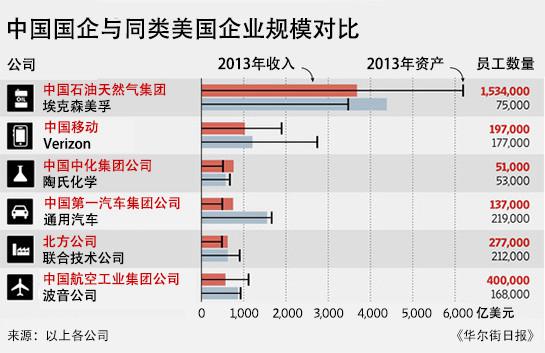 據中國財務部的數據顯示,截至2013年底,中央、各省和地方政府擁有的企業約為155,000家。其中由中央直接掌控的規模最大、最具戰略意義的企業不到120家,這些企業肩負著各種使命:打造世界上最大的核反應堆、興建最昂貴的高鐵網絡、到海外收購礦產和農業資源、通過在發展中國家的基礎設施項目樹立中國的良好形象。為實現這些目標,央企享受著廉價貸款和各種補貼。
