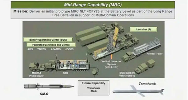 2022年12月5日,美陸軍接收了首個(gè)陸基“中程火力”(MRC)連。交付硬件為一套完整的“陸基中程火力”地面設(shè)備和重裝填能力,包括一個(gè)連級(jí)作戰(zhàn)中心,四輛發(fā)射車以及拖車。預(yù)計(jì)在完成系統(tǒng)測(cè)試、培訓(xùn)和交付導(dǎo)彈后,該導(dǎo)彈連將在2023財(cái)年形成作戰(zhàn)能力。在硬件系統(tǒng)交付后,美陸軍在圣誕節(jié)后將進(jìn)行設(shè)備訓(xùn)練,系統(tǒng)建立理論,并制定戰(zhàn)術(shù)、技術(shù)和作戰(zhàn)程序。
